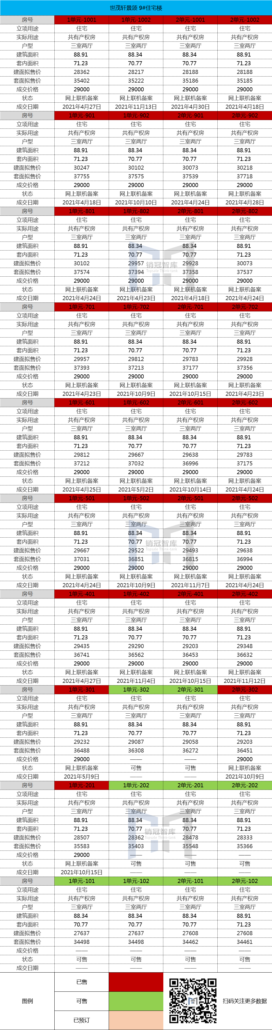 本次网签小表妹统计了9号住宅楼,目前网签情况如下:
