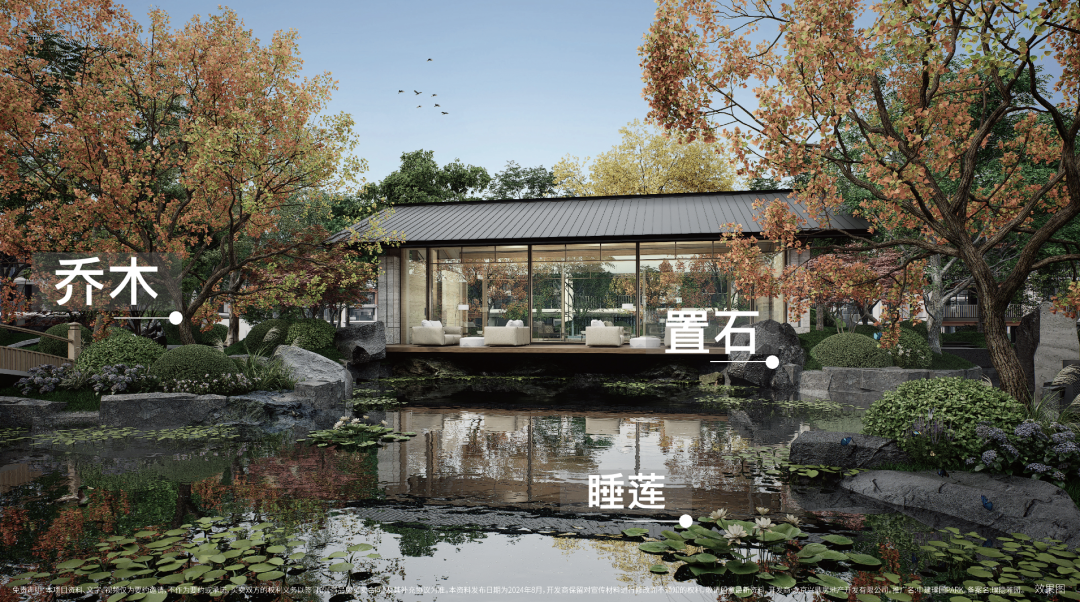 这是社区大堂处的景观效果图,整个社区大堂,被巧妙地安放在了园林的主轴景观水系上。