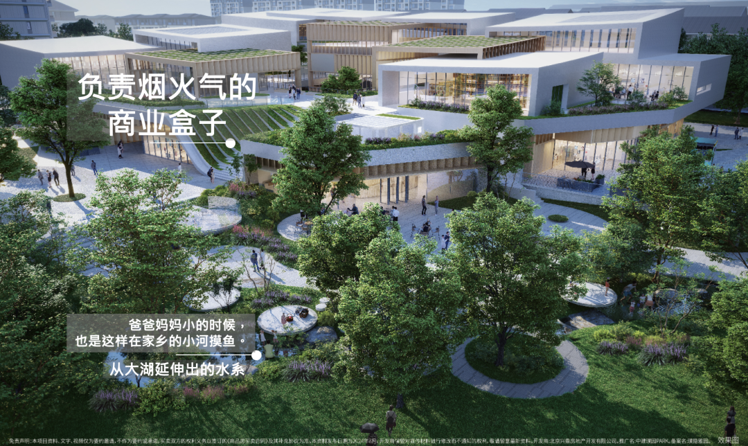 第二,就是重新设计了中心配套地块,让原本封闭的公园,更好地与配套、住宅嵌合起来。